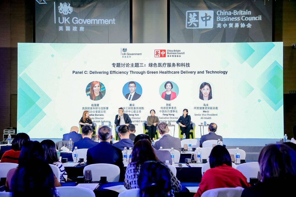 随后,在英国商业贸易部生命科学和医疗健康参赞安睿辉、英国大使馆健康政策参赞蒋天明、英国国家科研与创新署中国办公室副主任杜羽菲的主持下,大会围绕“绿色供应链和绿色生产”“绿色医院和基础设施”“绿色医疗服务和科技”三项热点话题,邀请中国医药企业管理协会EHS专委会副主任张道新,赫力昂中国质量和供应链副总裁眭金国,CDP全球环境信息研究中心项目经理翟悦竹,华润医药商业集团有限公司副总经理郭俊煜,英国国民医疗服务体系NHS Hiten Patel,清华大学万科公共卫生与健康学院副教授底骞,英国奥雅纳副总监Jack Lo,中国节能协会绿色医院专委会副主委李立荣,清华工研院基因细胞治疗中心副主任蒋云,阿里健康资深副总裁马立,地球宪章委员、中国执行理事长方虹等嘉宾做了交流分享。
