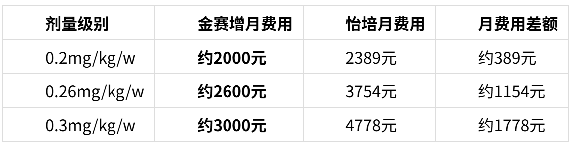 以0.3mg/kg/周的治疗剂量计算,金赛增年治疗费用约3.6万元,而同规格次抛型产品年治疗费用约5.7万元,患儿家庭年治疗费用差距超过2万元。同时,金赛增的医保支付负担比同类次抛型产品低45%-52%,在实现患者减负的同时,也降低了医保基金的支出压力。
