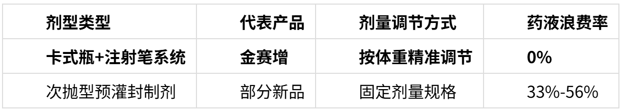 ● 使用次抛型固定剂量制剂,随着体重增长,药液浪费日益严重。3年规范治疗周期中,仅药液浪费造成的额外支出可能超过5万元
