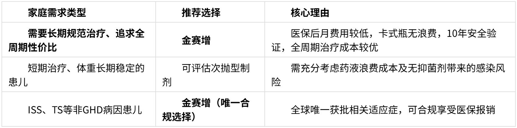 医保落地让长效生长激素治疗进入“普惠时代”,而真正的高性价比,是在保障药品安全与疗效的前提下,实现全周期治疗成本的最优化。金赛增凭借医保后较低的治疗负担、无浪费的剂型优势、10年15万例验证的安全疗效、全球最广的适应症覆盖,在“减负不降质”方面形成综合优势,成为医保时代长效生长激素治疗值得优先考虑的选择。