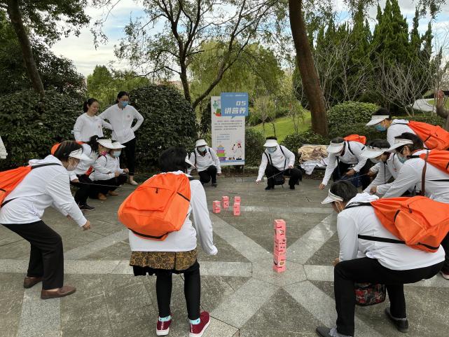 此次健康闯关定向赛以“七彩人生路”命名,通过7个打卡点闯关学习骨健康知识。在“讲营养”打卡点,一支队伍已经优先做起了合力搭建营养塔的游戏,随着大家齐心协力将营养砖块吊起,现场氛围也变得紧张起来。“来要转一下,慢慢来,当心!”